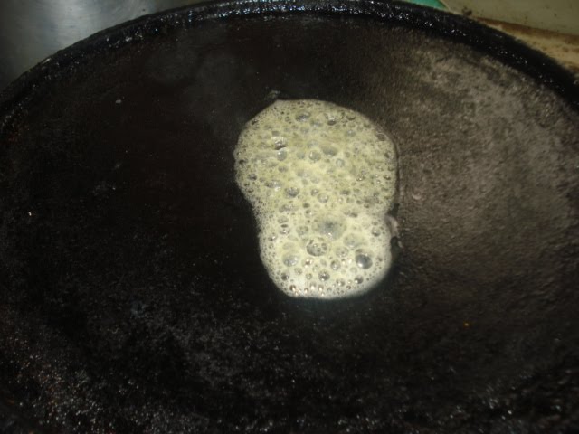 - Heat oil in a wide thick bottomed vessel. I use another cooker.